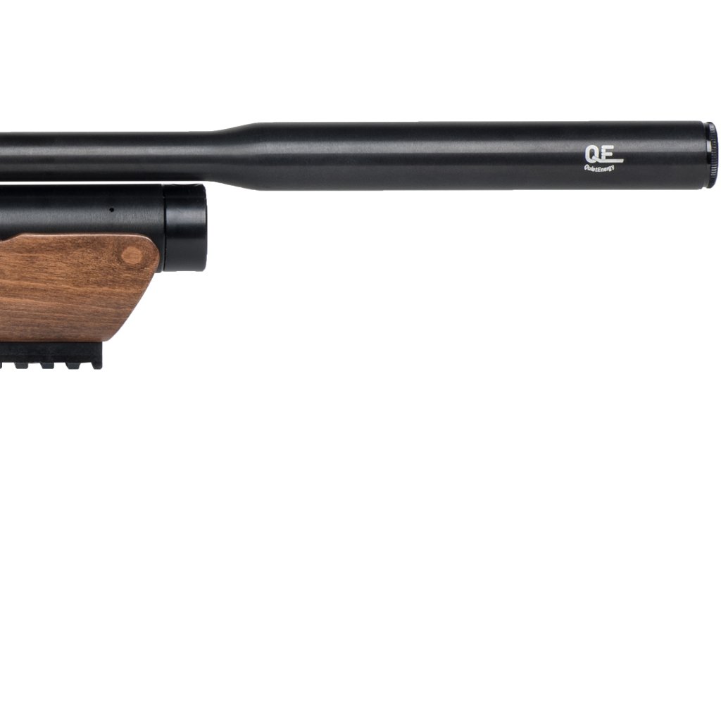 Hatsan FlashPup QE — это компактная буллпап PCP-винтовка калибра .177 (4,5 мм) с QuietEnergy шумопоглощающей конструкцией и фиксированным алюминиевым баллоном объёмом около 165 cc (до 200 BAR), оснащённая боковым рычагом перезарядки, сменными дисковыми магазинами (14 патронов в .177), нарезным стволом, настраиваемым двухступенчатым спуском и функцией anti-knock; модель даёт сочетание хорошей мощности и управляемой отдачи, что делает её удобной для практической стрельбы, короткой охоты и быстрой стрельбы серией.